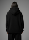 The Black Polar Fleece Hoodie by PROJECT VASH offers a perfect oversized/box fit with comfort and minimal embroidery details,making it a standout for any unisex wardrobe.